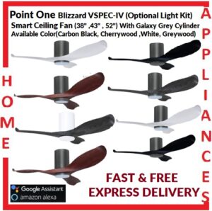 POINT ONE Blizzard ( 38″ , 43″ , 52″ ) VSPEC-IV Smart Ceiling Fan With Galaxy Grey Cylinder , Optional Light Kit